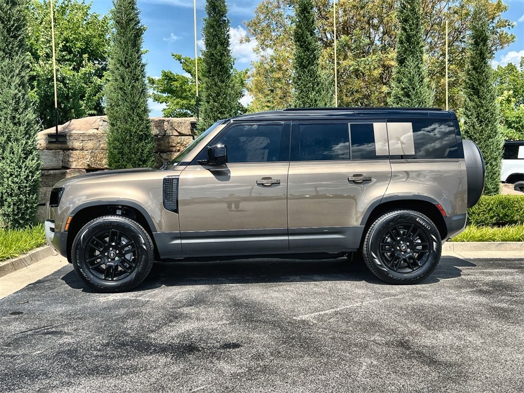Land Rover Certified! Clean CARFAX. Odometer is 7971 miles below market average! Certified. Gondwana Stone Metallic 2025 Land Rover Defender 110 S AWD 8-Speed Automatic 2.0L I4 DI Turbocharged Adaptive Dynamics, Air Suspension Pack, Auto High-beam Headlights, Automatic temperature control, Black Contrast Roof, Black Exterior Pack, Cold Climate Package, Dark Grey Powder Coat Cross Car Beam, Electronic Air Suspension, Front dual zone A/C, Front fog lights, Fully automatic headlights, Garage door transmitter: HomeLink, Headlight Power Wash, Heated steering wheel, Heated Washer Jets, Heated Windscreen, Navigation system: Connected Navigation PIVI Pro, Power moonroof, Radio: Meridian Sound System, Rain sensing wipers, Tow Hitch Receiver, Wheels: 19" Gloss Black Style 6010.
